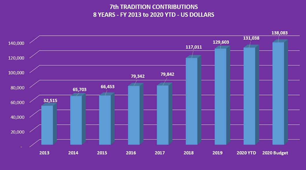 Click here to see a Graph of 2013 to 2020 YTD Annual 7th Tradition Contributions
