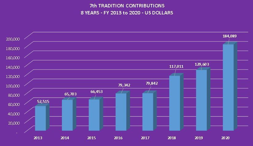 Click here to see a Graph of 2013 to 2020 YTD Annual 7th Tradition Contributions