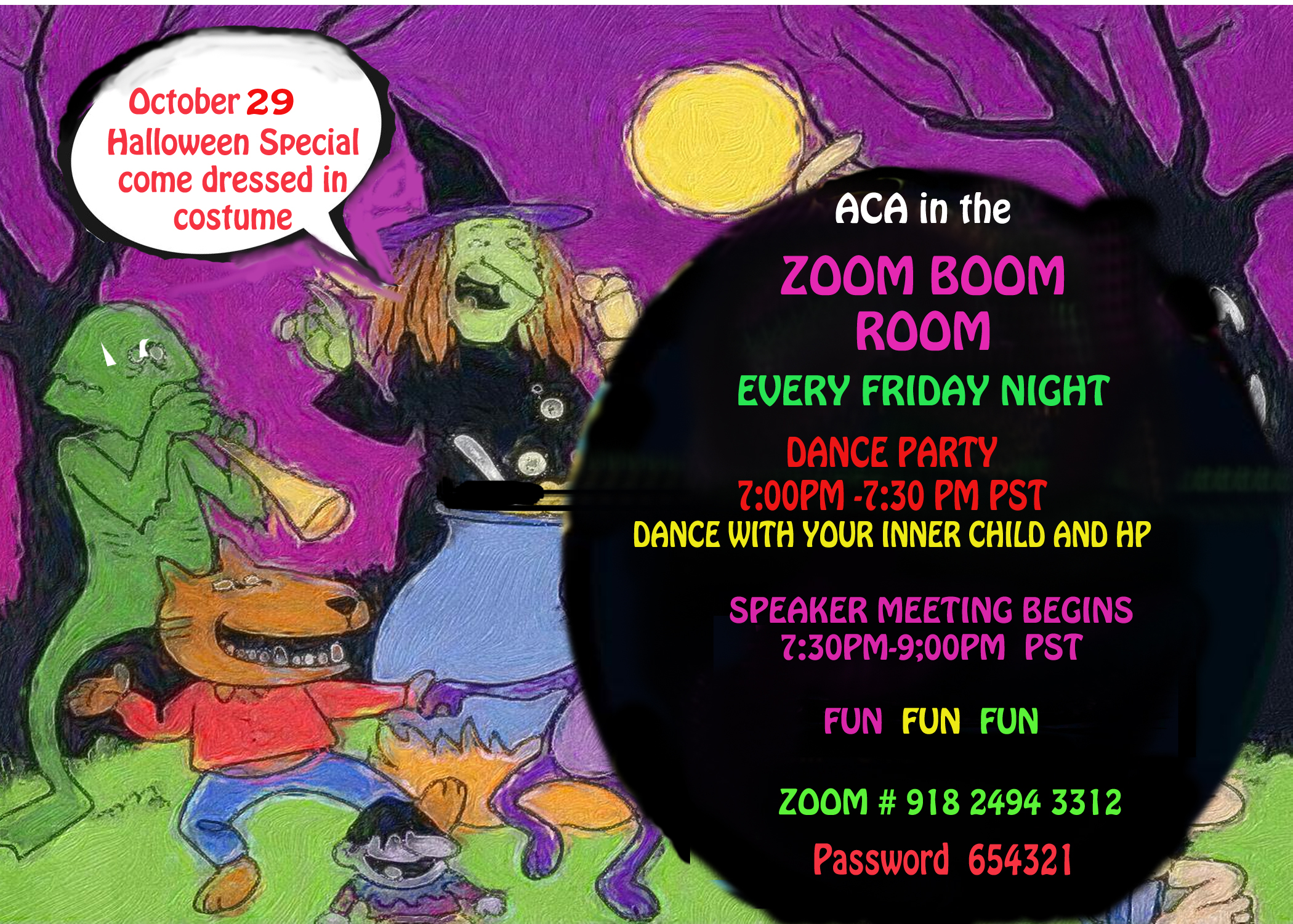 Halloween Costume Dance Party and Speaker meeting Friday October 29th . Dance party at 7:00 pm (PST).
